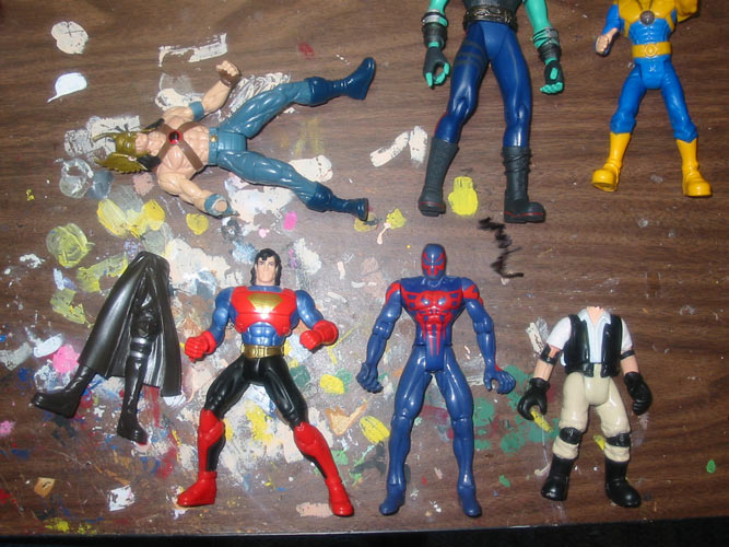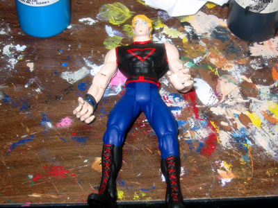 After all the sanding and sculpting are finished, I attach any capes, bracelets, arm bands, or belts. Then it's time for the painting and detailing. I use craft acrylics, and seal the finished job with an acrylic clear coat spray.